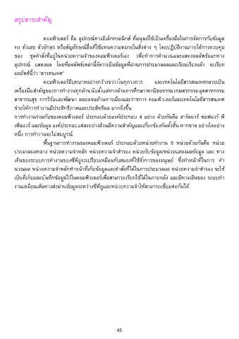 ประมวลผลกลาง หนวยความจ�าหลัก หนวยความจ�าส�ารอง หนวยรับข้อมูล/หนวยแสดงผลข้อมูล และ ทาง