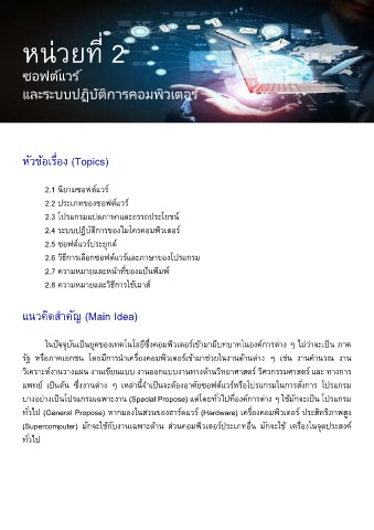 แพทย์ เปนต้น ซึงงานต่าง ๆ เหล่านจ�าเปนจะต้องอาศัยซอฟต์แวร์หรือโปรแกรมในการสั่งการ โปรแกรม
