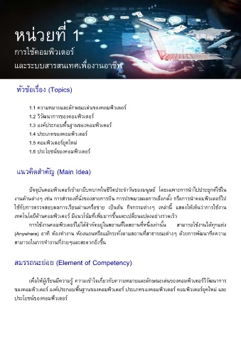 ปจจุบันคอมพิวเตอร์เข้ามามีบทบาทในชีวิตประจ�าวันของมนษย์ โดยเฉพาะการนาไปประยุกต์ใช้ใน