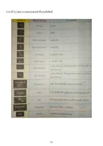 ่ ้ ้ ตารางที 2.2 (ต่อ) ความหมายและหนาทีของแปนพิมพ์ ่ 73