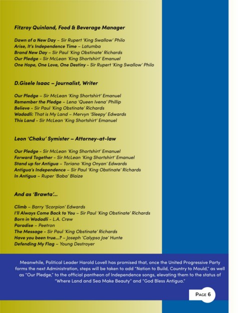 Rise: All Antiguans, Rise – Sir Rupert ‘King Swallow’ Philo Our Pledge - Sir McLean ‘King Shortshirt’ Emanuel