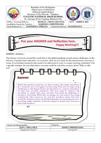 Study Notebook of: JOSEPHINE S. PERALTA Department/Group MATHEMATICS