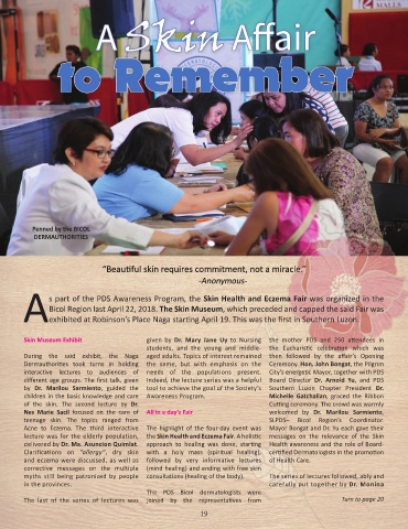 Skin Museum Exhibit given by Dr. Mary Jane Uy to Nursing the mother PDS and 250 attendees in