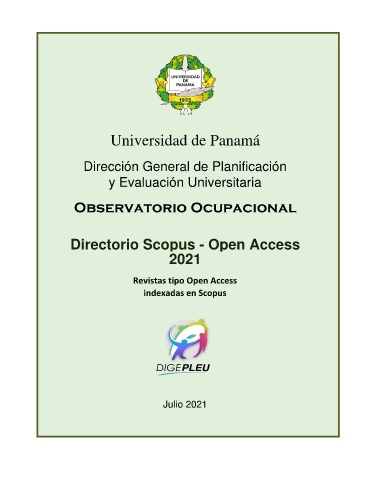 Universidad de Panamá Dirección General de Planificación y Evaluación Universitaria Observatorio Ocupacional Directorio Scopus - Open Access 2021 Revistas tipo Open Access indexadas en Scopus Julio 2021 .