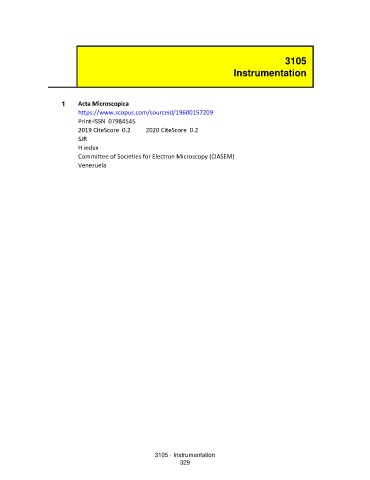 3105 Instrumentation 1 Acta Microscopica https://www.scopus.com/sourceid/19600157209 Print-ISSN 07984545 2019 CiteScore 0.2 2020 CiteScore 0.2 SJR H index Committee of Societies for Electron Microscopy (CIASEM) Venezuela 3105 - Instrumentation 329