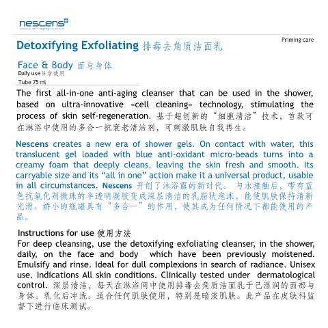 in all circumstances. Nescens 开创了沐浴露的新时代。 与水接触后,带有蓝