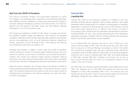 the pandemic situation closely and effectively. The Company has prepared associated companies or BTSGIF fall short of their projections, the Company’s