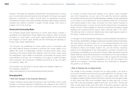 risk assessment, issues related to employees, communities and supply chains Rabbit LINE Pay; and (3) the improvement on the distribution business unit (Kerry