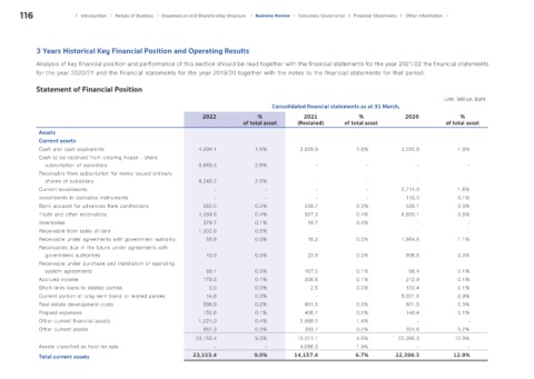 Analysis of key financial position and performance of this section should be read together with the financial statements for the year 2021/22 the financial statements
