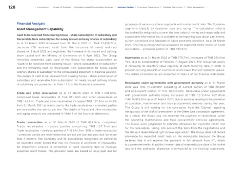 as at 31 March 2022 increased from 31 March 2021 of THB 12,916.7mn, 2022, The Group recognised an allowance for expected credit losses for Trade