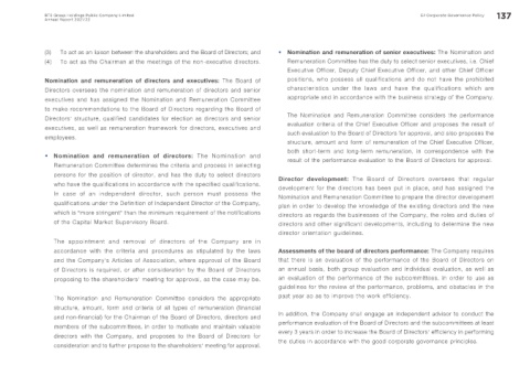 (3) To act as an liaison between the shareholders and the Board of Directors; and • Nomination and remuneration of senior executives: The Nomination and