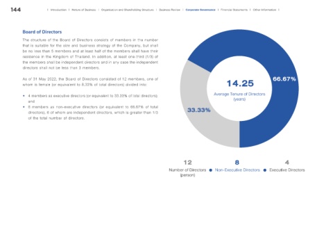 As of 31 May 2022, the Board of Directors consisted of 12 members, one of 14.25 66.67%