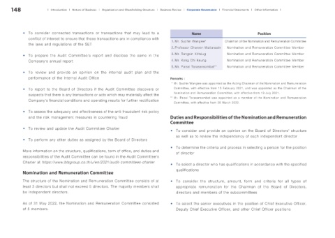 • To prepare the Audit Committee’s report and disclose the same in the 3.Mr. Rangsin Kritalug Nomination and Remuneration Committee Member