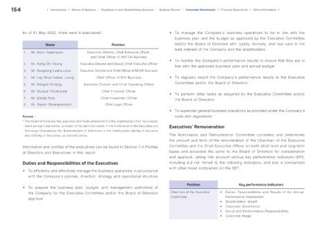 As of 31 May 2022, there were 8 executives*. • To manage the Company’s business operations to be in line with the