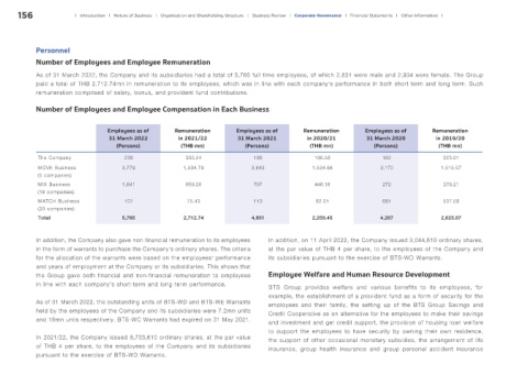 in line with each company's short-term and long-term performance. BTS Group provides welfare and various benefits to its employees, for