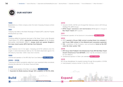 Established as a limited company under the name Tanayong Company Limited • Acquired 94.6% of BTSC and changed the Company name to BTS Group