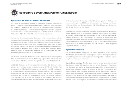 BTS Group Holdings Public Company Limited 5.3 Corporate Governance Performance Report 159