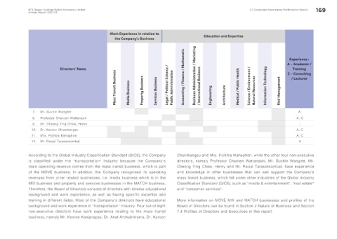 BTS Group Holdings Public Company Limited 5.3 Corporate Governance Perfomance Report 169