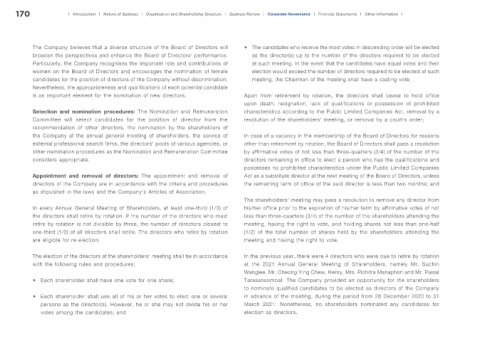 The Company believes that a diverse structure of the Board of Directors will • The candidates who receive the most votes in descending order will be elected