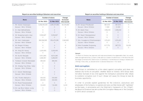BTS Group Holdings Public Company Limited 5.3 Corporate Governance Perfomance Report 181