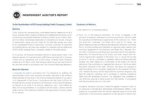BTS Group Holdings Public Company Limited 6.2 Independent Auditor’s Report 195