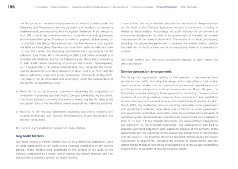 principal and interest), and for the Extension Line Phase No.2, amounting Key audit matters and how audit procedures respond to each matter are