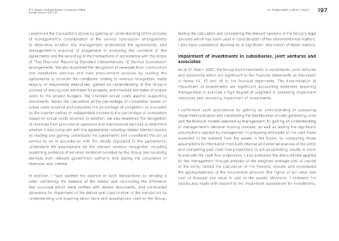 Arrangements. We also examined the recognition of revenues from construction As at 31 March 2022, the Group had investments in subsidiaries, joint ventures
