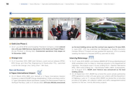 Company Limited (UTA) (BTS Group shareholding of 35%) submitted a bid for of Highways. Later on 11 January 2022, BGSR has started the construction
