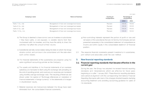 d) The financial statements of the subsidiaries are prepared using the 3. New f nancial reporting standards