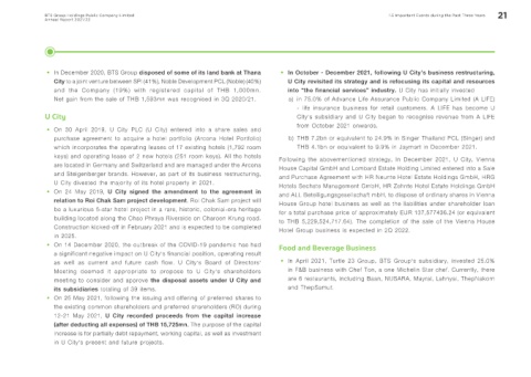 as well as current and future cash flow. U City’s Board of Directors’ • In April 2021, Turtle 23 Group, BTS Group’s subsidiary, invested 25.0%
