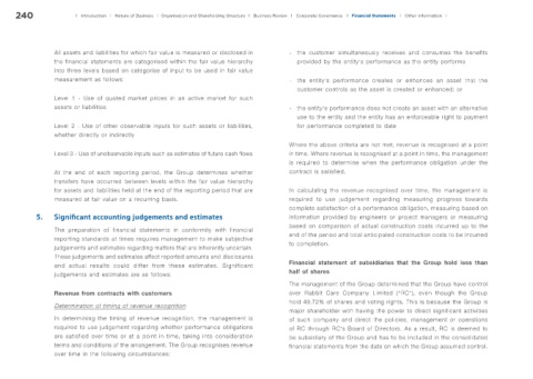 measured at fair value on a recurring basis. required to use judgement regarding measuring progress towards