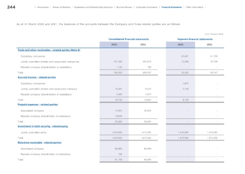 As at 31 March 2022 and 2021, the balances of the accounts between the Company and those related parties are as follows: