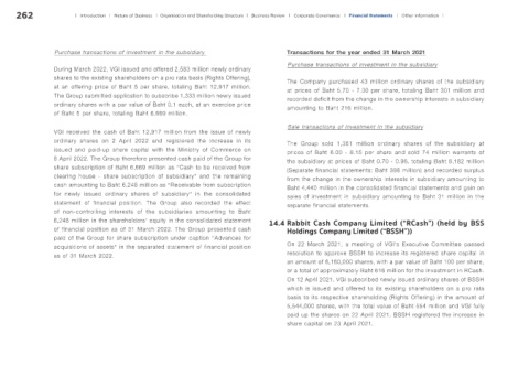 8 April 2022. The Group therefore presented cash paid of the Group for the subsidiary at prices of Baht 0.70 - 0.96, totaling Baht 8,182 million