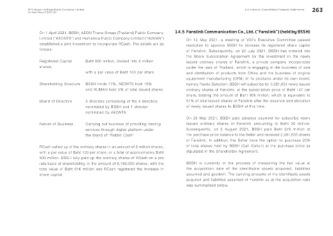 On 1 April 2021, BSSH, AEON Thana Sinsap (Thailand) Public Company 14.5 Fanslink Communication Co., Ltd. (“Fanslink”) (held by BSSH)