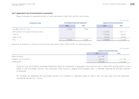 BTS Group Holdings Public Company Limited 6.4 Notes to Consolidated Financial Statements 275