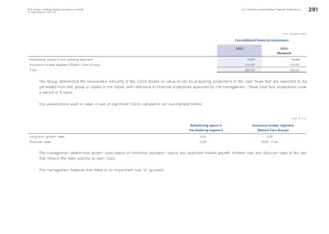 BTS Group Holdings Public Company Limited 6.4 Notes to Consolidated Financial Statements 291