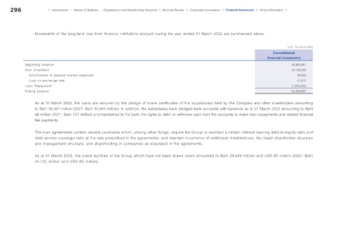 Movements of the long-term loan from financial institutions account during the year ended 31 March 2022 are summarised below.