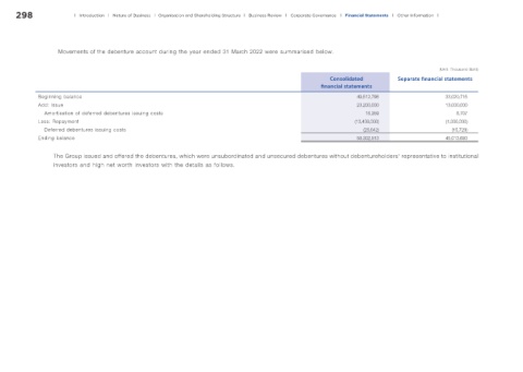 Movements of the debenture account during the year ended 31 March 2022 were summarised below.