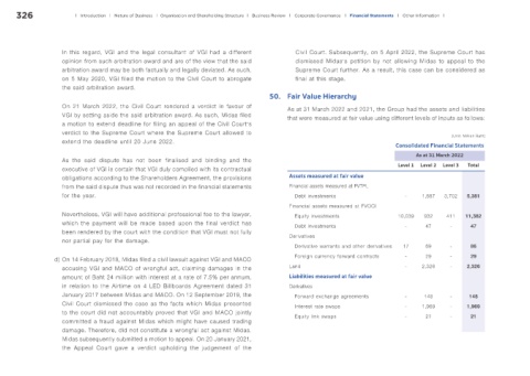 VGI by setting aside the said arbitration award. As such, Midas filed that were measured at fair value using different levels of inputs as follows: