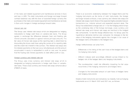 of the trains and related equipment and maintenance services in Euro There is an economic relationship between the hedged items and the