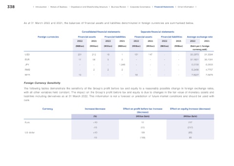 As at 31 March 2022 and 2021, the balances of financial assets and liabilities denominated in foreign currencies are summarised below.
