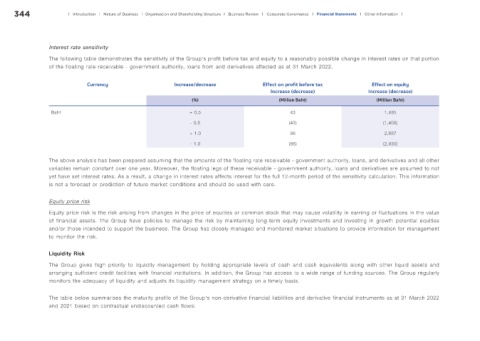 yet have set interest rates. As a result, a change in interest rates affects interest for the full 12-month period of the sensitivity calculation. This information