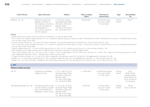 (2) On 13 August 2021, Northern Bangkok Monorail Co., Ltd. increased its registered and paid up capital from Baht 11,799,420,000 to be Baht 14,400,000,000 with the total of 144,000,000 issued shares