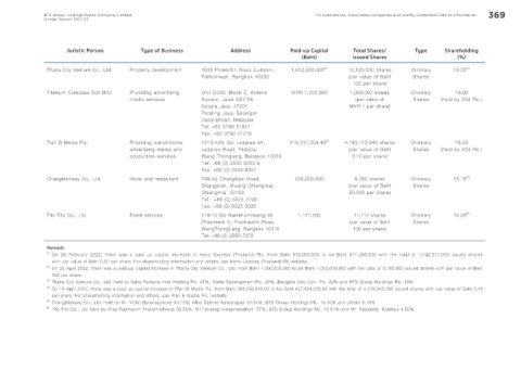 BTS Group Holdings Public Company Limited 7.3 Subsidiaries, Associated Companies and Jointly Controlled Entities Information 369