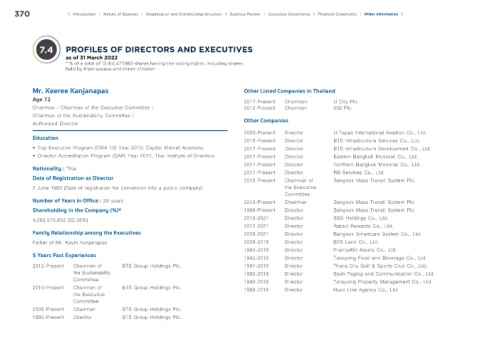 2012-Present Chairman of BTS Group Holdings Plc. 1991-2018 Director Thana City Golf & Sports Club Co., Ltd.