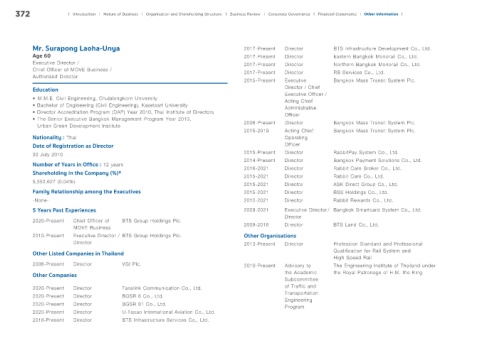 Mr. Surapong Laoha-Unya 2017-Present Director BTS Infrastructure Development Co., Ltd.