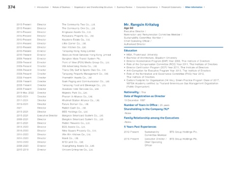 2015-Present Director The Community Two Co., Ltd. Mr. Rangsin Kritalug