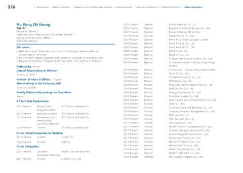 2007-Present Director BTS Group Holdings Plc. 2017-Present Director Richee Property Management Co., Ltd.