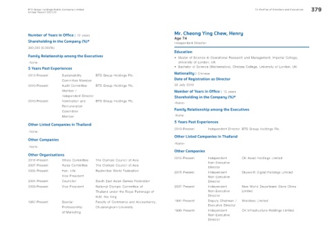 BTS Group Holdings Public Company Limited 7.4 Profiles of Directors and Executives 379