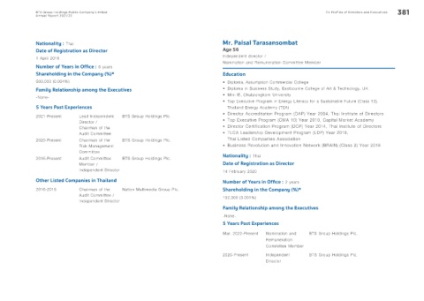BTS Group Holdings Public Company Limited 7.4 Profiles of Directors and Executives 381